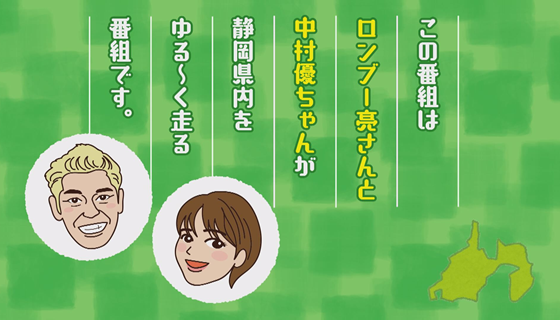 ロンドンブーツ1号2号田村亮と、走るタレント中村優が、静岡をゆる~く走るランニング番組。(制作:TOKAIケーブルネットワーク)