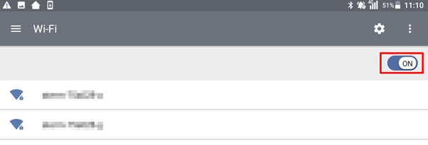続いて〔Wi-Fi〕を右にスライドしてONにします。