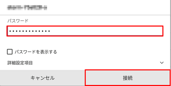 〔パスワード〕欄に暗号化キーを入力して接続をタップします。