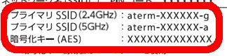 ※2種類の周波数(2.4GHz/5GHz)がある場合は5GHz(aterm-XXXXXX-a)を推奨します。