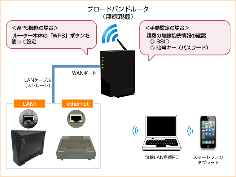 パソコンやスマートフォンを無線ルーターに接続する方法は大きく2つあります
