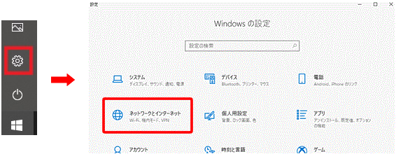 〔設定〕→〔ネットワークとインターネット〕をクリックします。