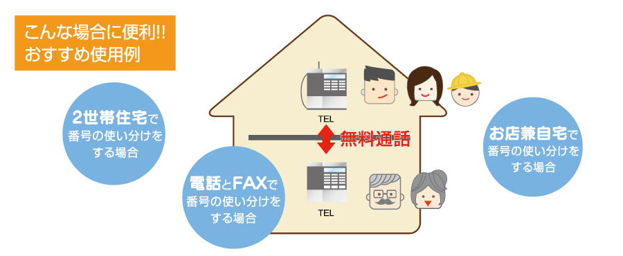 ひかりdeトークS加入者間は無料通話となりますので同じ家屋でも無料にてご利用いただけます。 ※「ホワイトコール24」サービスにおいて、1つの携帯電話番号につき、複数の「ひかりdeトークS」の電話番号を登録することはできません。