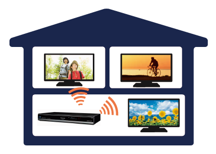 ホームネットワーク機能(DLNA)を利用して、放送中の番組を2カ所(別の2部屋)へ配信することが可能(STBで録画した番組も配信可能)。リビングに置いてあるSTBとテレビで番組を楽しみながら、DLNA対応テレビなどが置いてある子供部屋、寝室などで放送番組・録画番組を楽しめます。