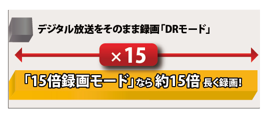 ※5:BSデジタルHD放送(約24Mbps)をDRモードで録画した場合と、15倍録モード(約1.6Mbps)で録画した場合の比較。