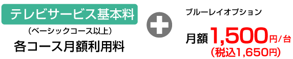 ブルーレイディスクドライブ/HDD内蔵STB標準取付工事費3,000円(税込3,300円)がかかります。