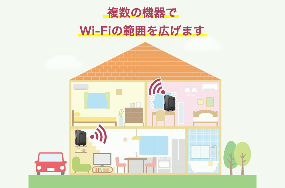 メインルーター(親機)とサテライトルーター(子機)が互いに通信し合い、
